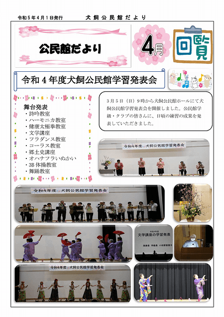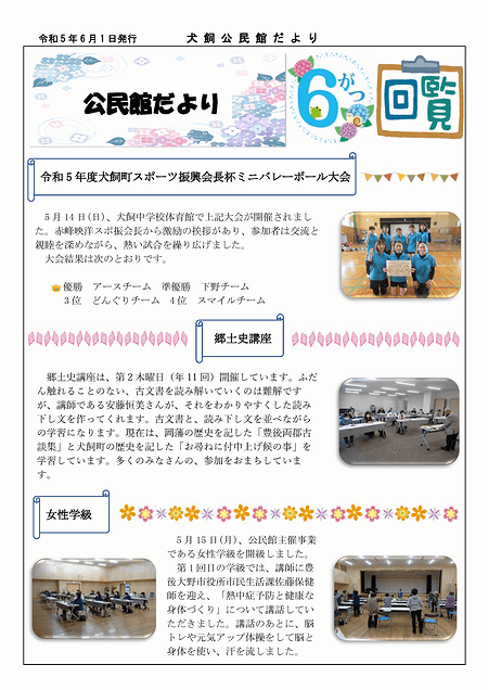 犬飼公民館の公民館だよりのページへ「犬飼公民館だより2024年5月号」を掲載いたしました。ぜひご覧ください。