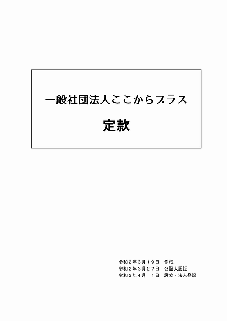 一般社団法人ここからプラスの定款を公開いたしました。