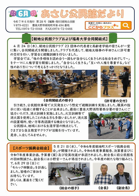 「朝地公民館だより2025年6月号」を掲載いたしました。