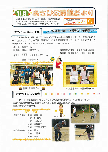 「朝地公民館だより2024年11月号」を掲載いたしました。
