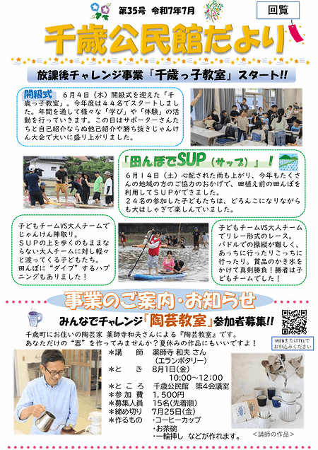 千歳公民館の公民館だよりのページへ「千歳公民館だより2025年7月号」を掲載いたしました。ぜひご覧ください。