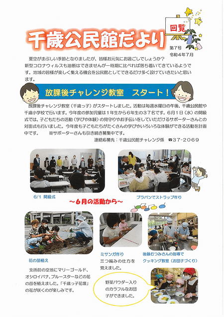 千歳公民館の公民館だよりのページへ「千歳公民館だより2022年7月号」を掲載いたしました。ぜひご覧ください。