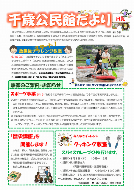 千歳公民館の公民館だよりのページへ「千歳公民館だより2023年7月号」を掲載いたしました。ぜひご覧ください。