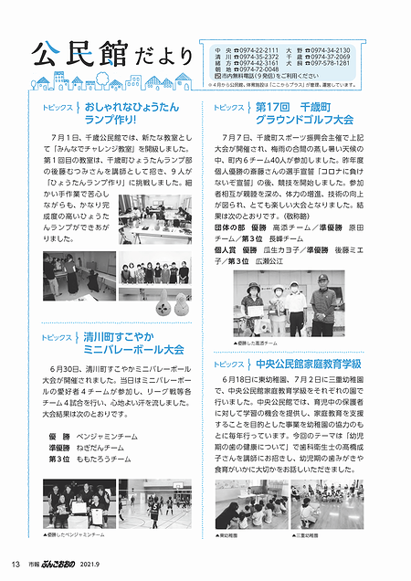 中央公民館の公民館だよりのページへ「中央公民館だより2021年9月号(市報版)」を掲載いたしました。ぜひご覧ください。