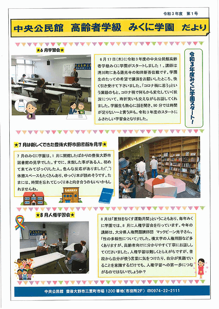 「中央公民館 高齢者学級 みくに学園だより(2021年第1号)」を掲載いたしました。