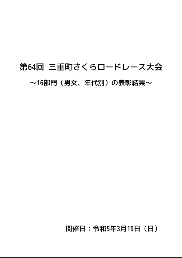第64回 三重町さくらロードレース大会 令和5年3月19日(日)表彰結果