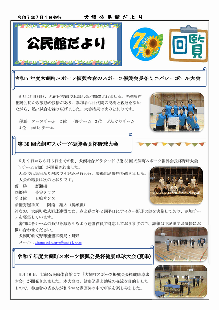 「犬飼公民館だより2025年7月号」を掲載いたしました。