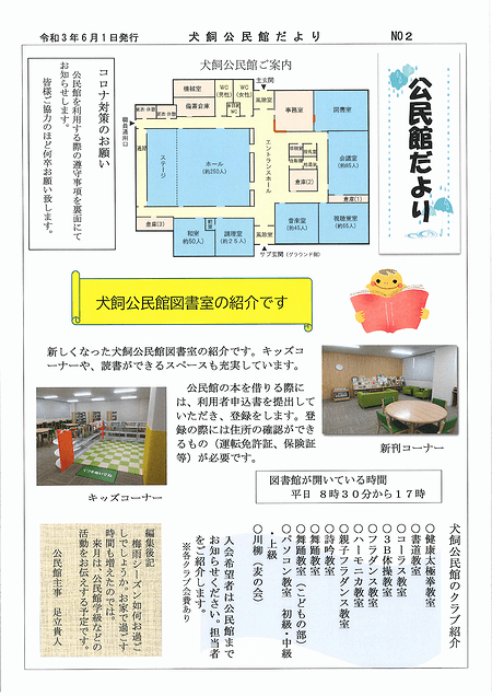犬飼公民館の公民館だよりのページへ「犬飼公民館だより2021年6月号」を掲載いたしました。ぜひご覧ください。
