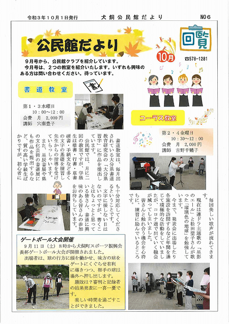 犬飼公民館の公民館だよりのページへ「犬飼公民館だより2021年10月号」を掲載いたしました。ぜひご覧ください。