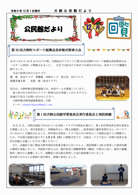 「犬飼公民館だより2023年12月号」を掲載いたしました。