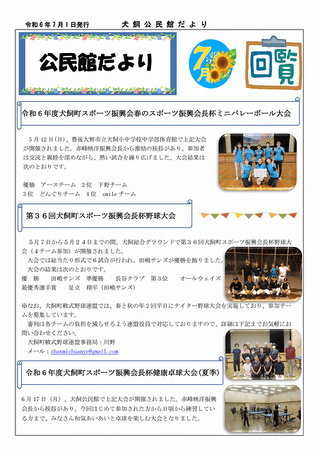 「犬飼公民館だより2024年7月号」を掲載いたしました。