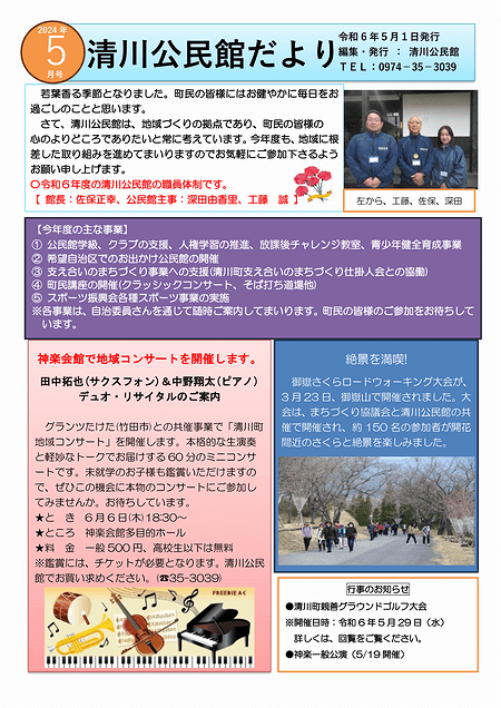 「清川公民館だより2024年5月号」を掲載いたしました。