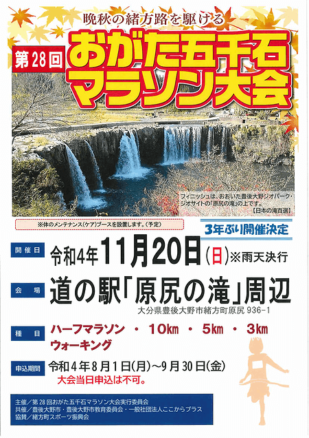2022年11月20日(日)に開催される「第28回 おがた五千石 マラソン大会」の開催概要を掲載いたしました。