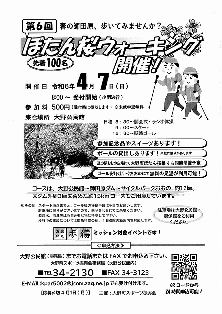 2024年4月7日(日)に「第6回 ぼたん桜ウォーキング」が開催されます。只今、参加者(先着100名)を大募集中です!