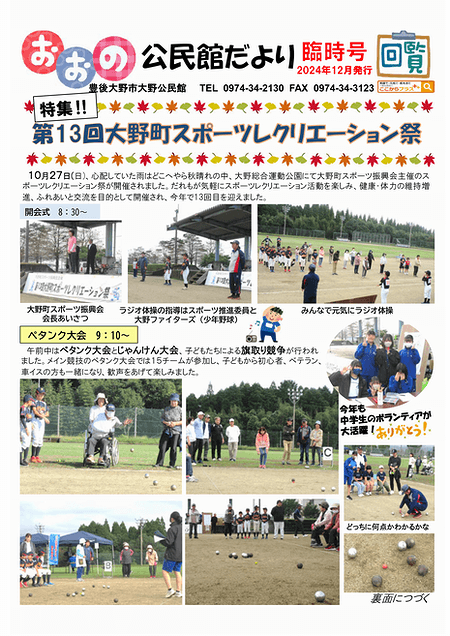「大野公民館だより2024年12月臨時号」を掲載いたしました。