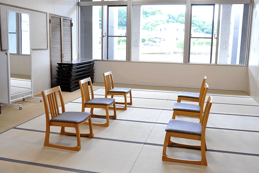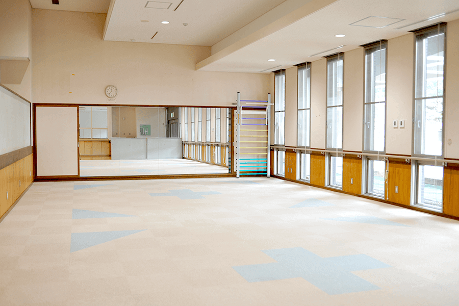 備考:壁面に鏡が設置されており、体操などの運動に利用しやすい部屋です。土足ではご利用いただけません。