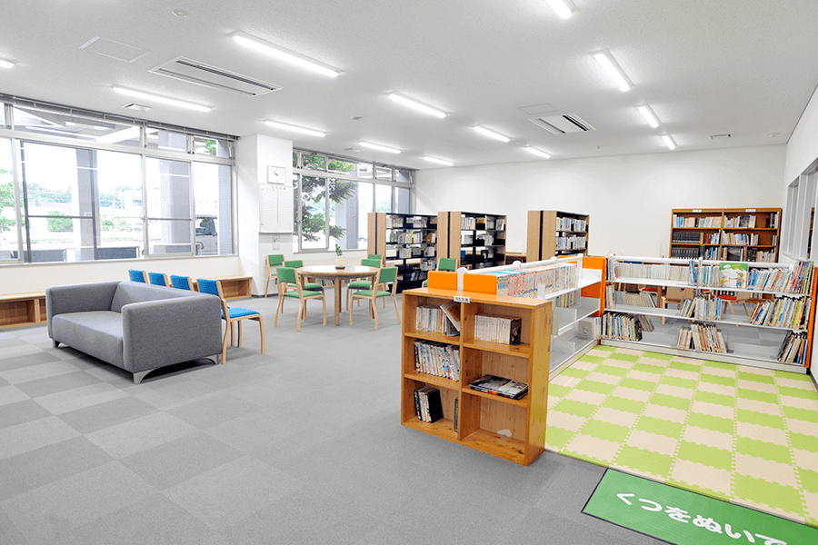 設備:約2,800冊蔵書/開架図書 約1,000冊/学習スペース、リラックスゾーン、寝転びスペース