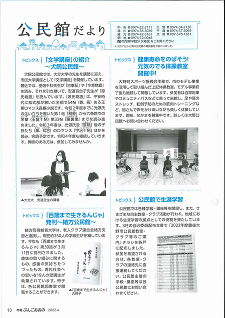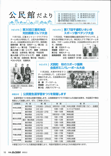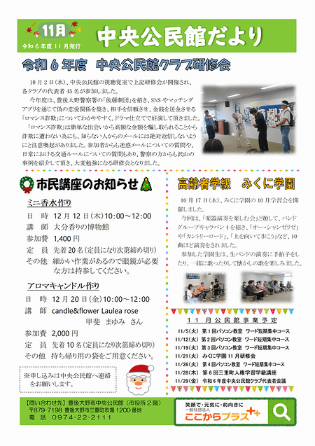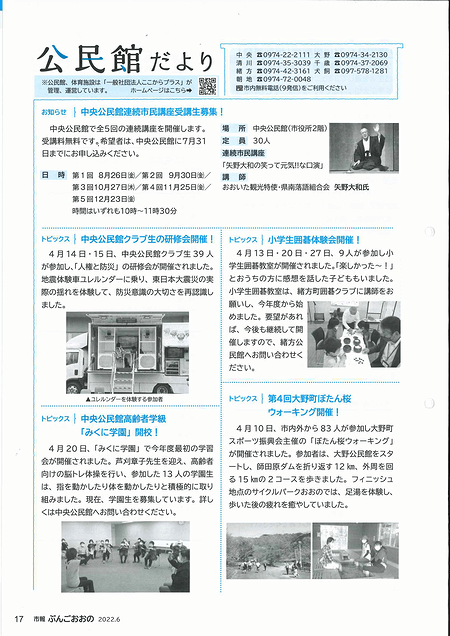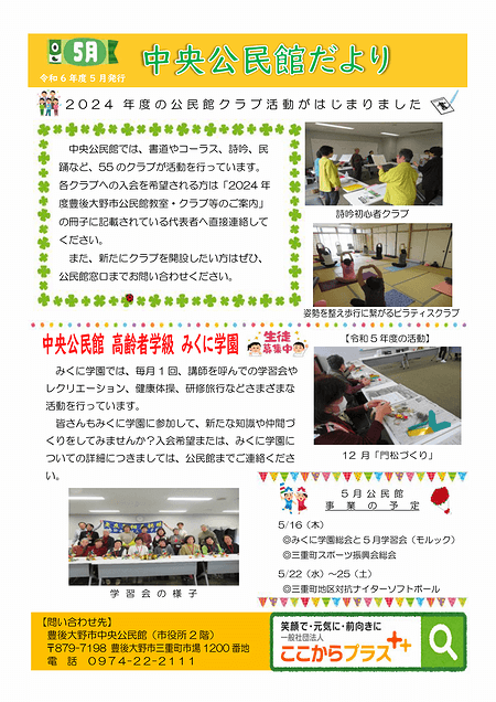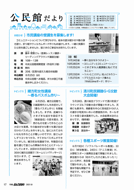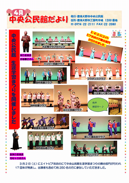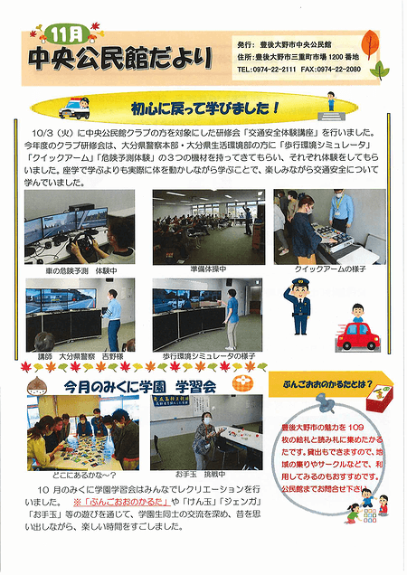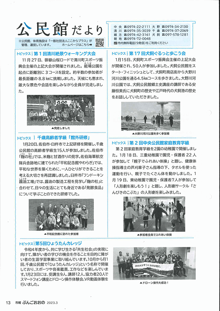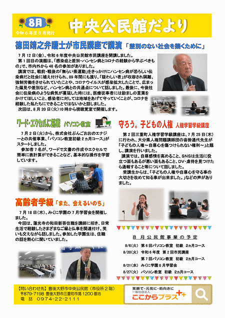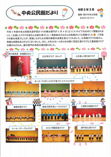 各画像をクリックすると、中央公民館の発行する広報誌「中央公民館だより」をPDFファイルにてご覧いただけます。