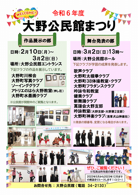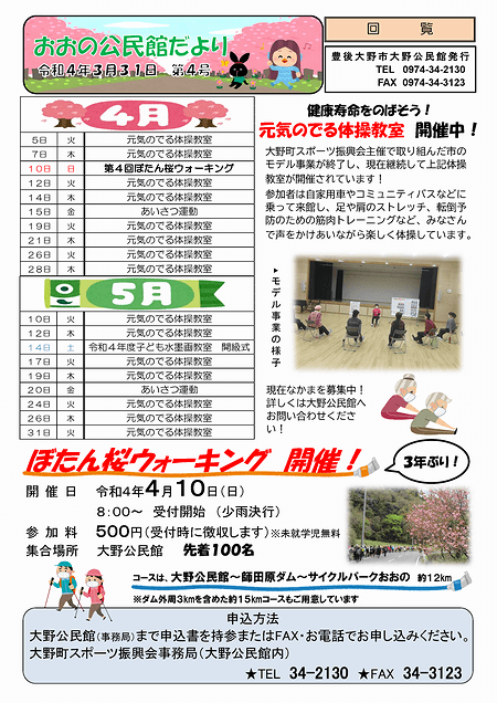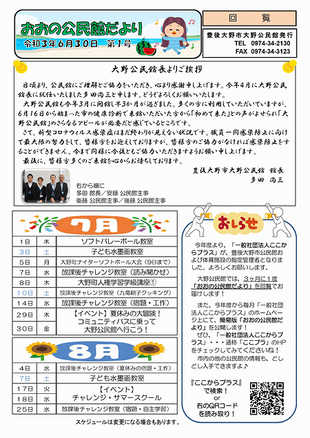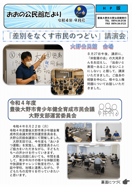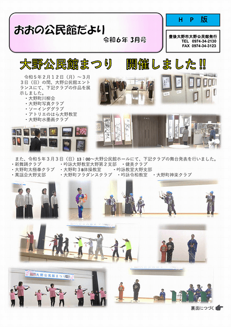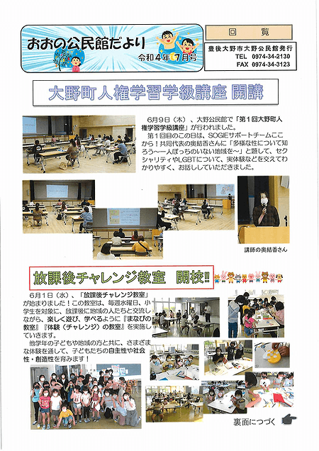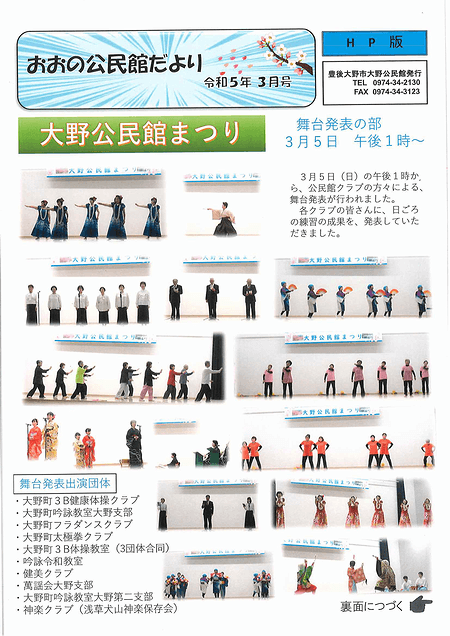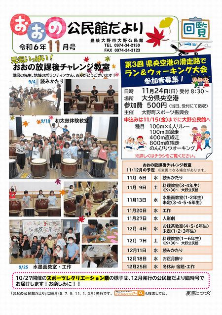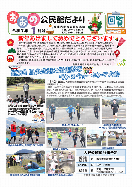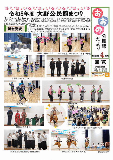 各画像をクリックすると、大野公民館の発行する広報誌「大野公民館だより」をPDFファイルにてご覧いただけます。